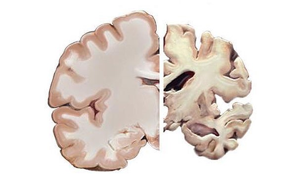 Imagem ilustrativa do cérebro saudável (E) e o atingido pelo mal de Alzheimer, que leva a deterioração da memória e de outras faculdades intelectuais (foto: Max Res / Divulgação )